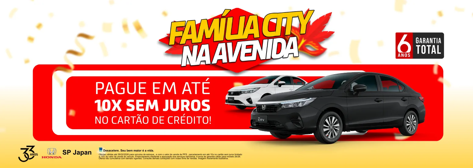 A Honda SP Japan preparou condições exclusivas para você conquistar o seu Honda da Família City — a combinação ideal de tecnologia, desempenho e segurança para transformar o seu dia a dia.